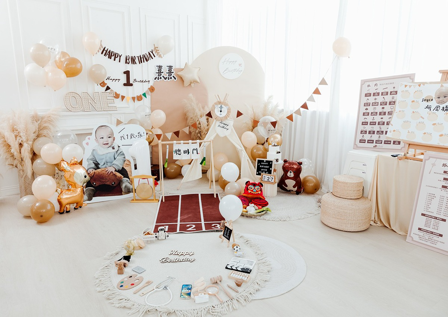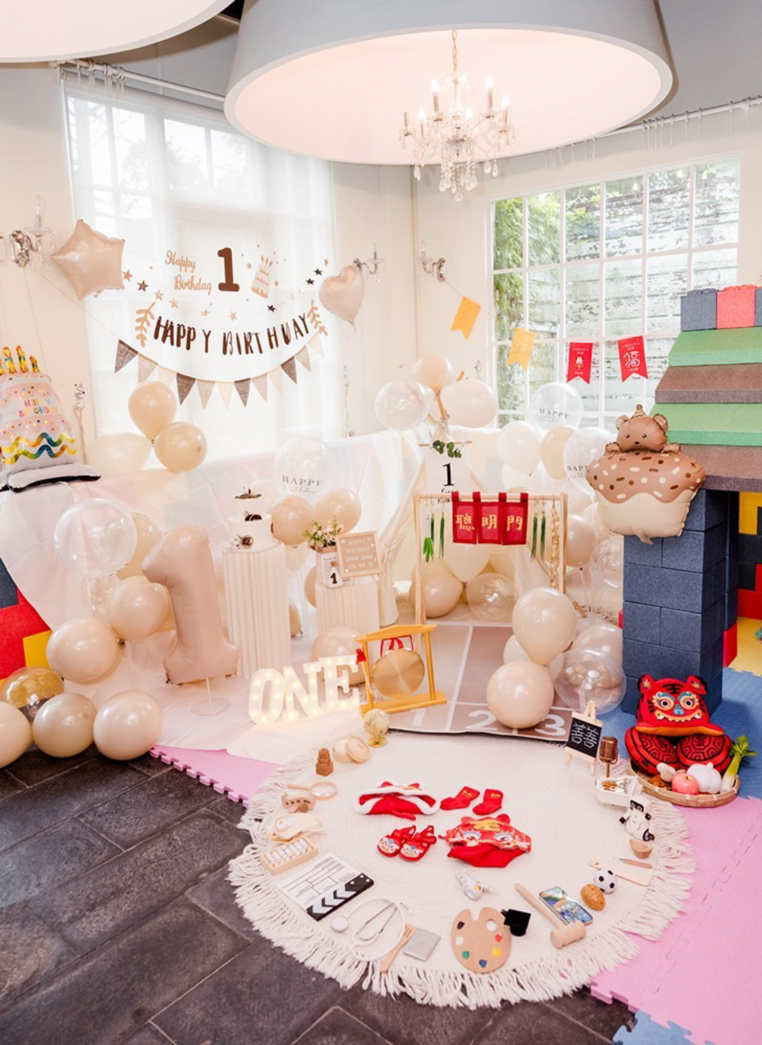 親子樂園這類場地,通常會比較偏向生日派對的感覺,比較適合找朋友一起來玩,重點會放在熱鬧和互動,還有小朋友有沒有玩得開心;相對來說,抓周儀式就不會是主軸,拍出來的畫面也多半偏生活感一點。如果你在意的是完整儀式或畫面一致性,這種類型通常就需要再另外搭配安排。