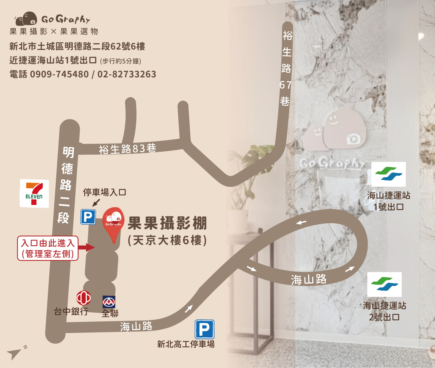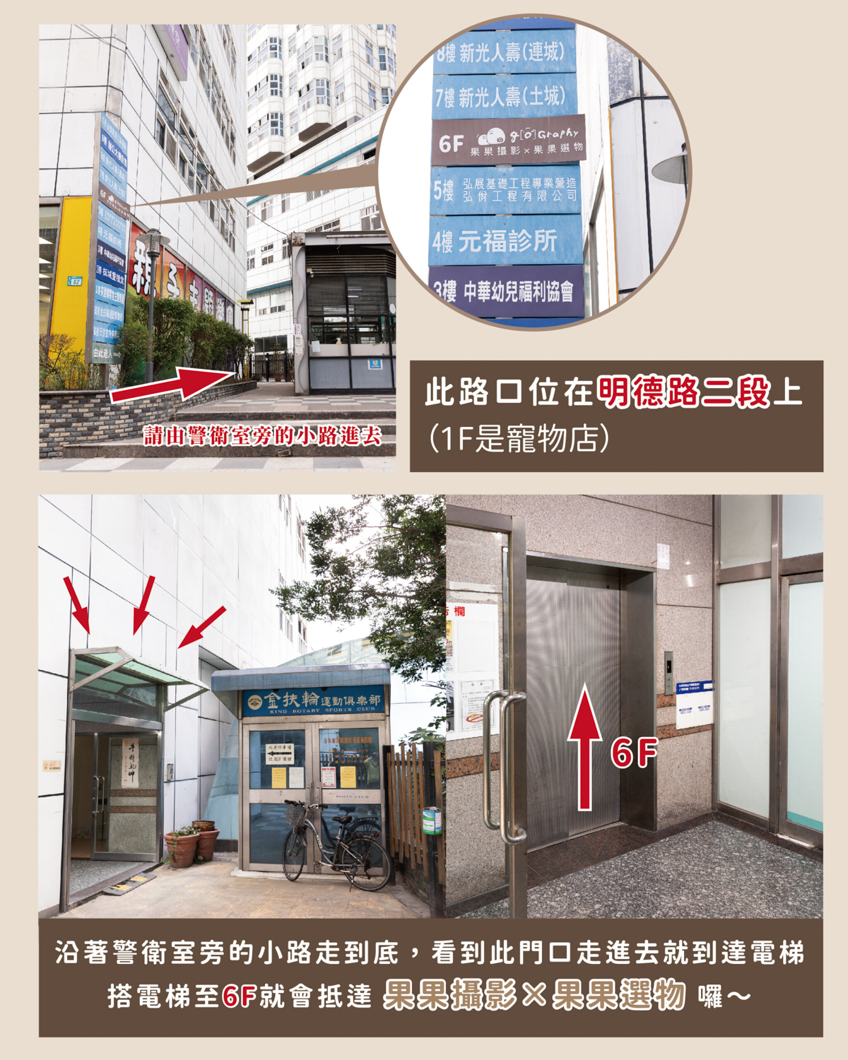 指定電梯: 停車後請搭乘大樓指定電梯直達 6 樓