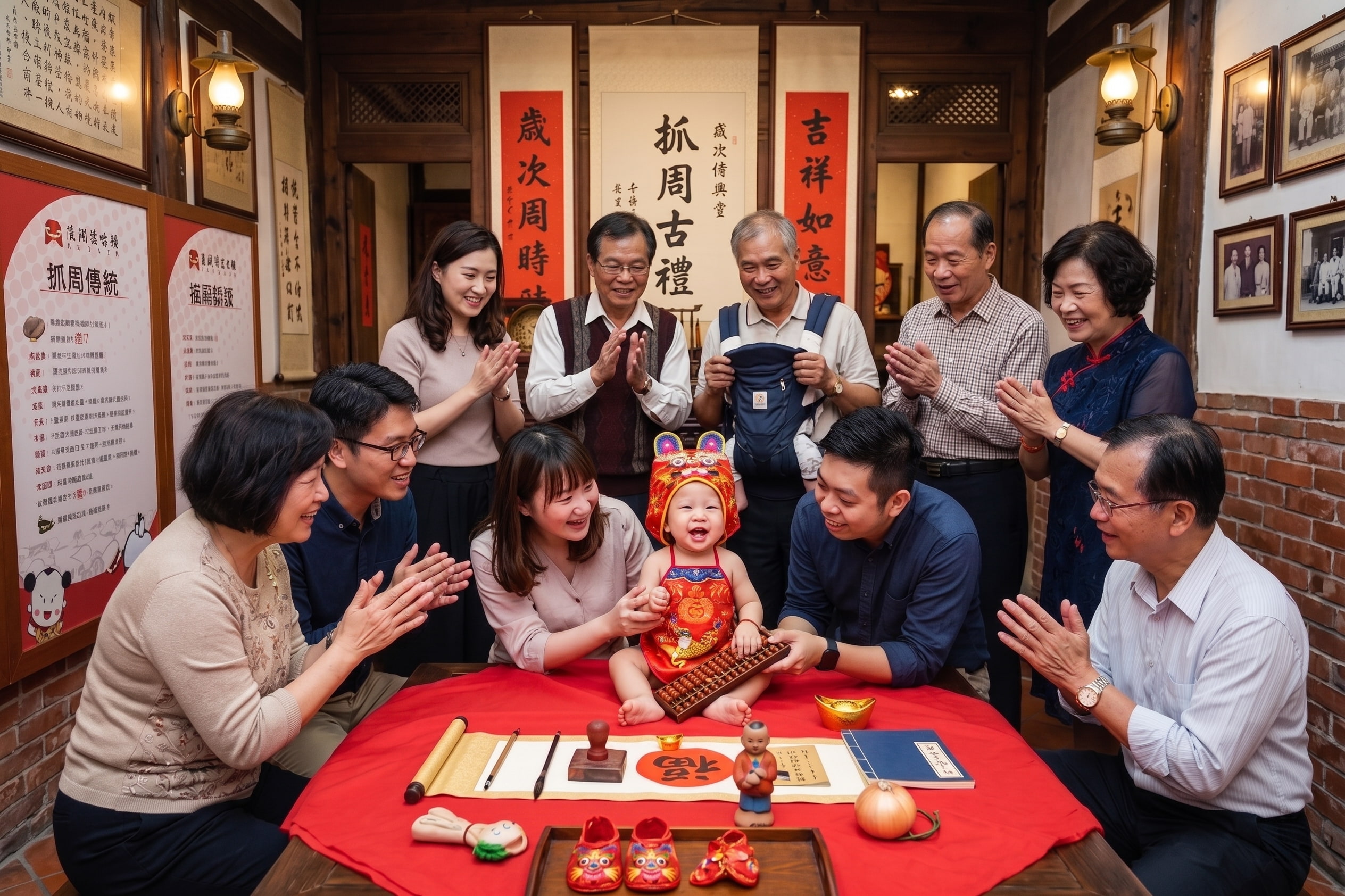 這類場地通常會把抓周流程安排得比較完整,現場也多半會有人協助引導,對第一次辦抓周,或本來就不熟流程的家庭來說,真的會少很多慌亂感,也比較不用自己一邊顧孩子、一邊還要顧場控流程;整體氛圍通常偏溫馨、偏傳統,重點就是把儀式順利完成。