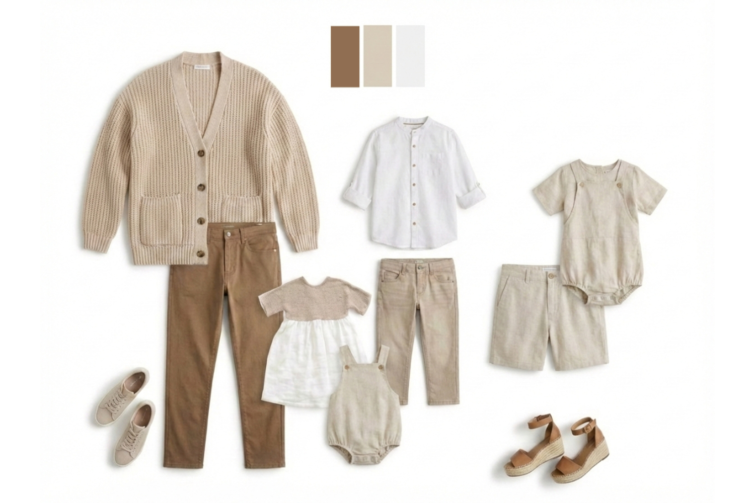 我們希望全家福呈現的是輕鬆、自在的家庭氣氛,但「簡單」不代表「簡陋」。選擇高品質的基礎單品,才能讓這份隨性變成一種經典。