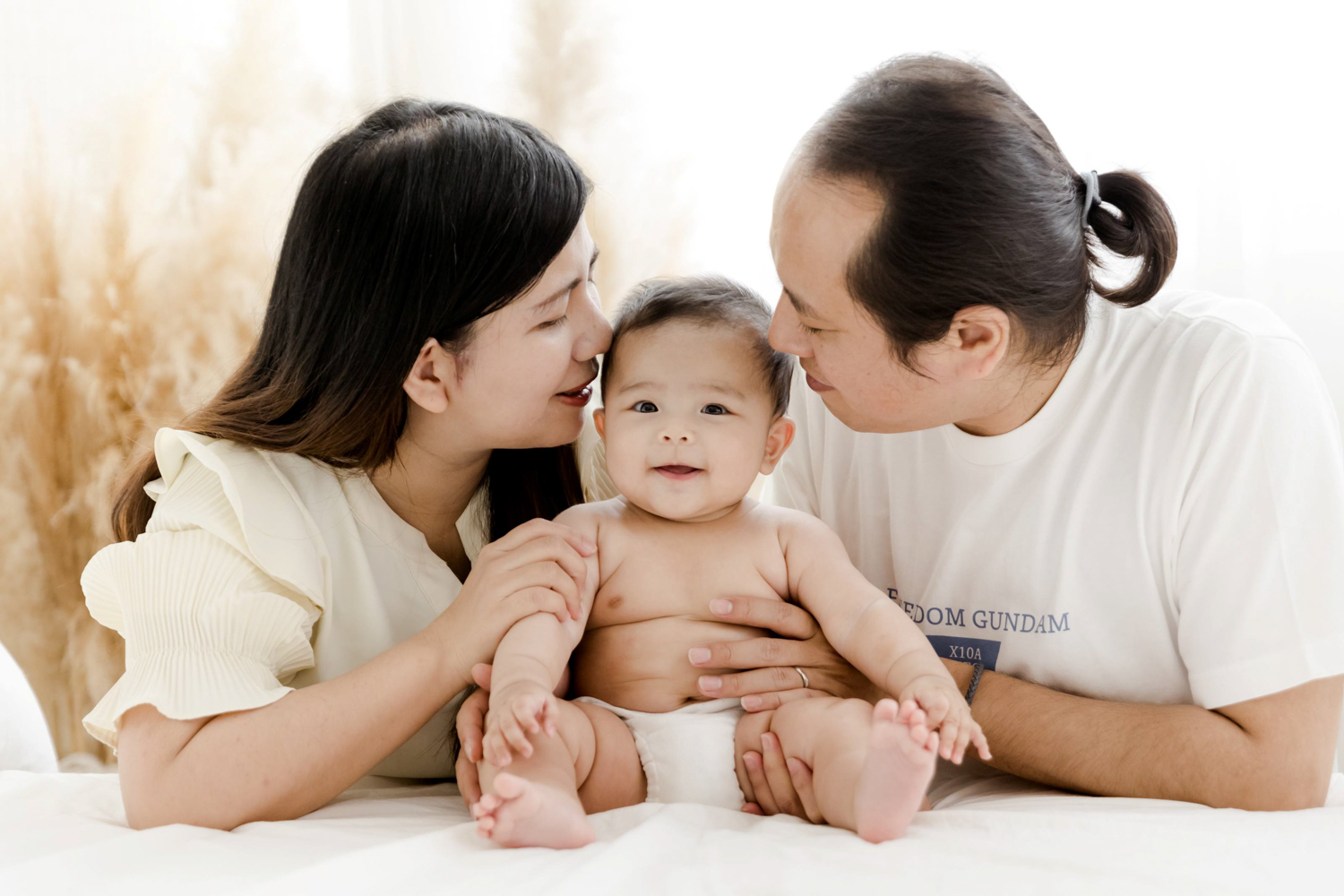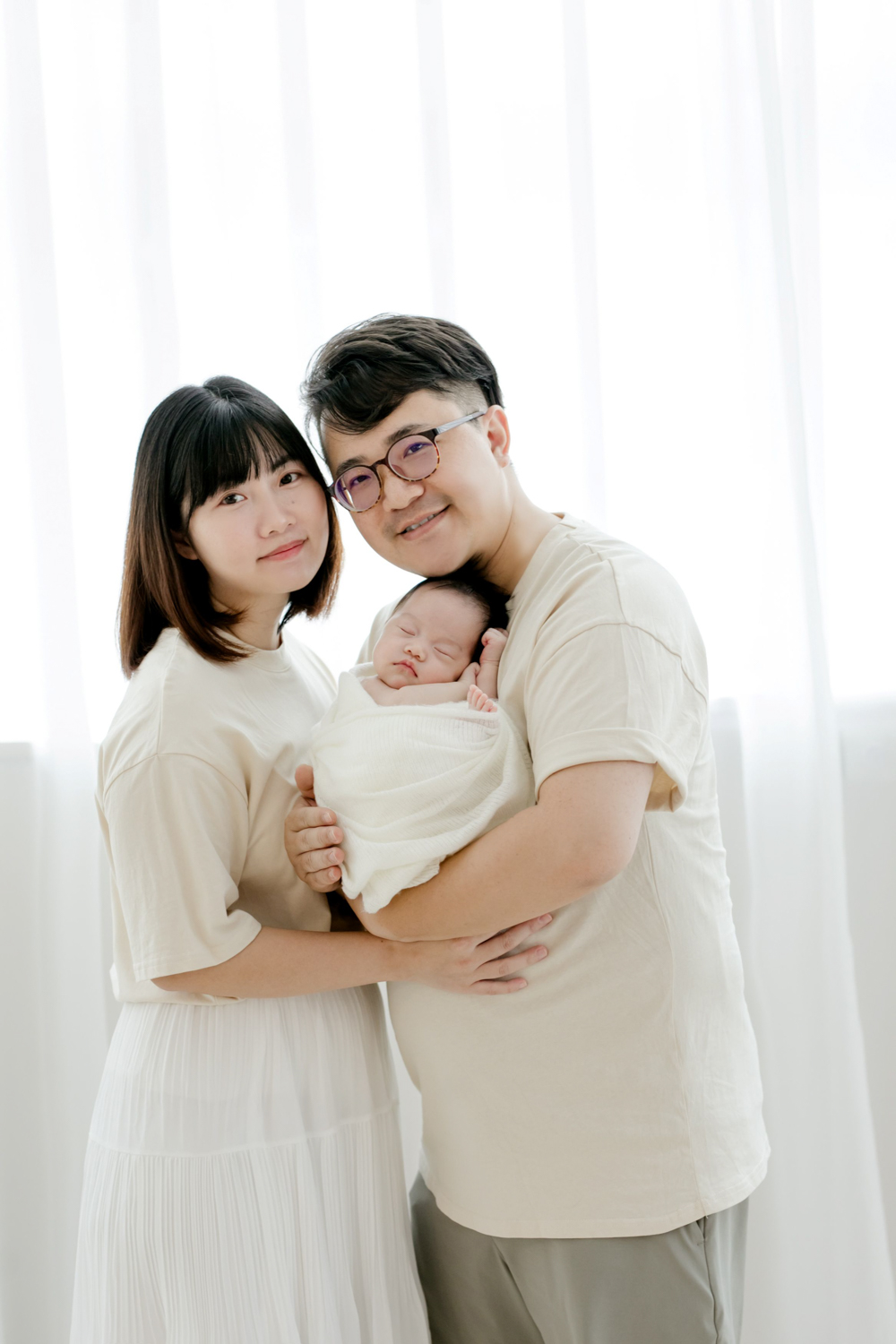 例如,月齡較小的新生兒,會特別安排床景或包覆感較高的場景,讓寶寶能自在躺著、被家人圍繞。