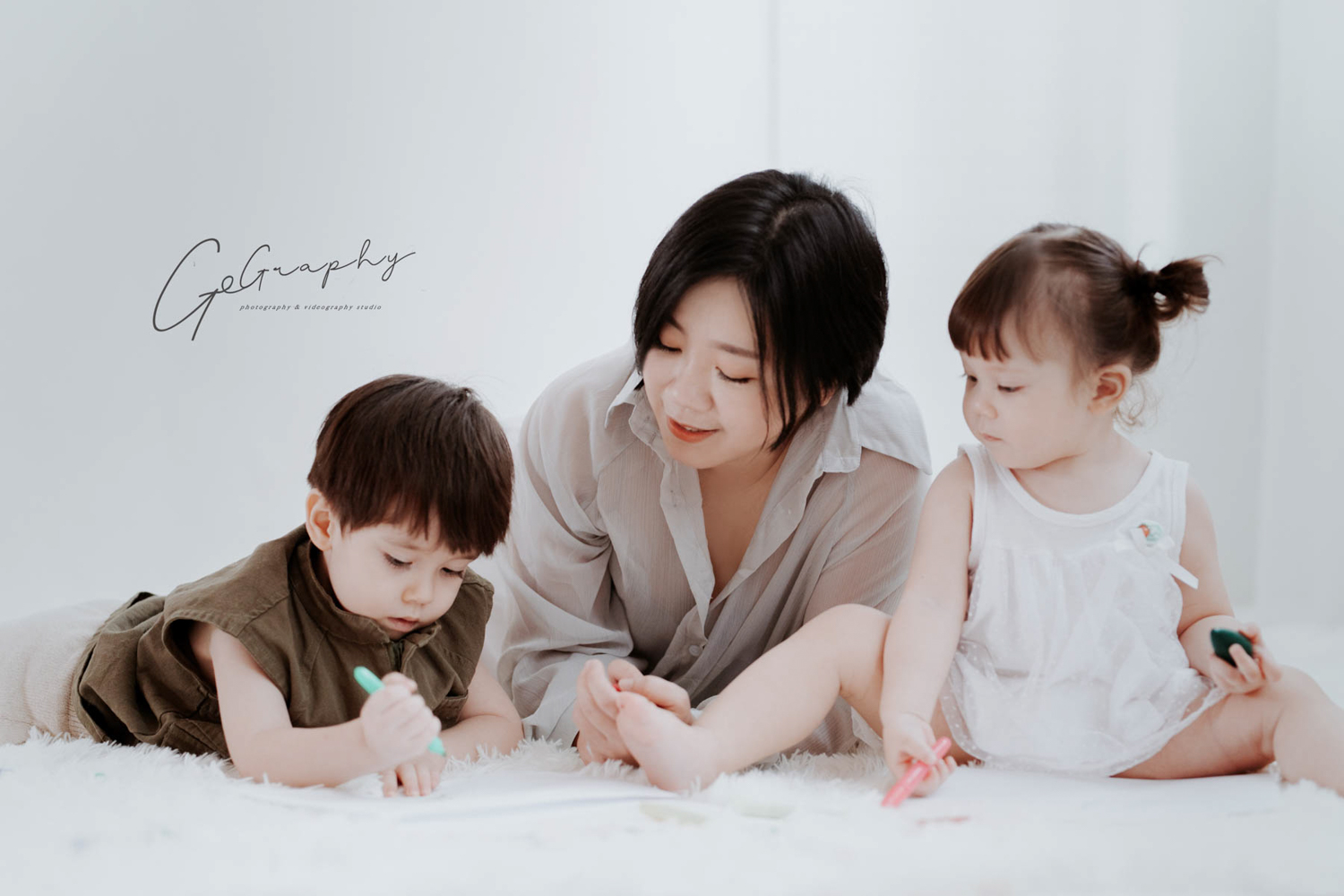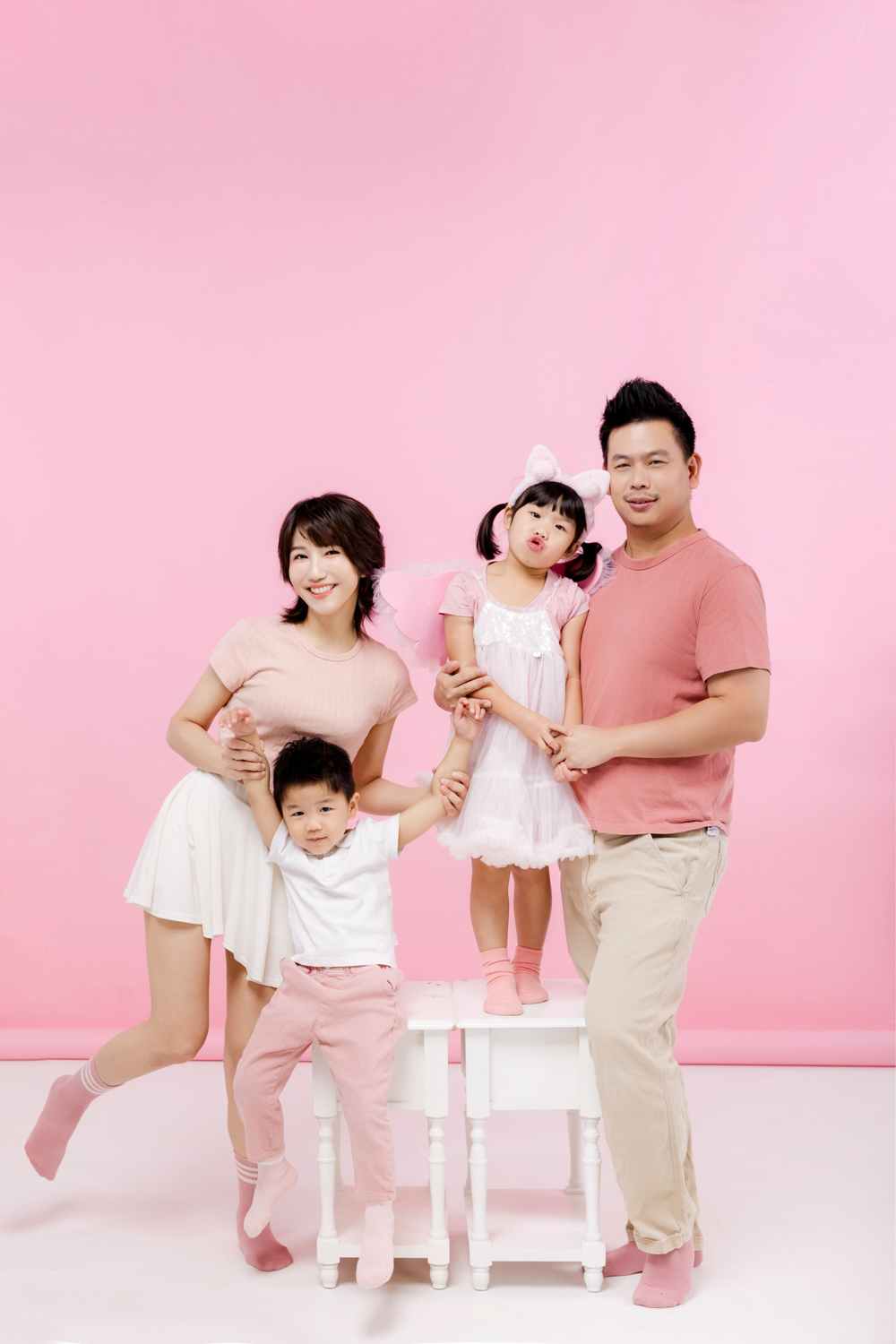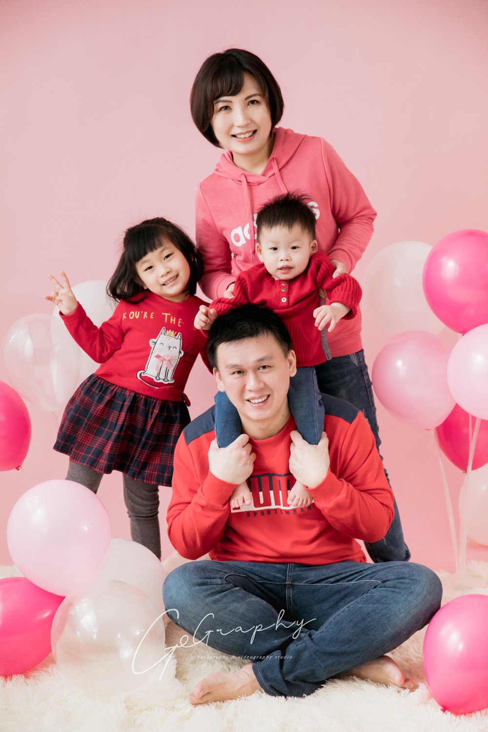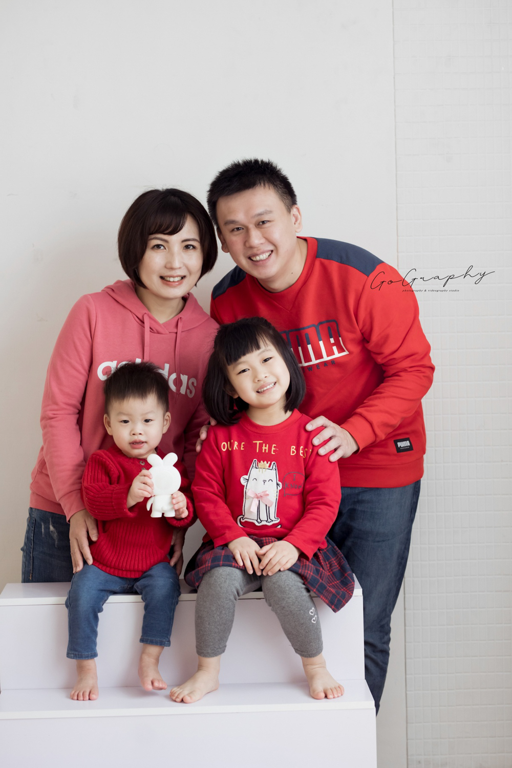在果果攝影棚,全家福不是套用同一個背景拍完就走, 而是依照每一個家庭成員的組成與