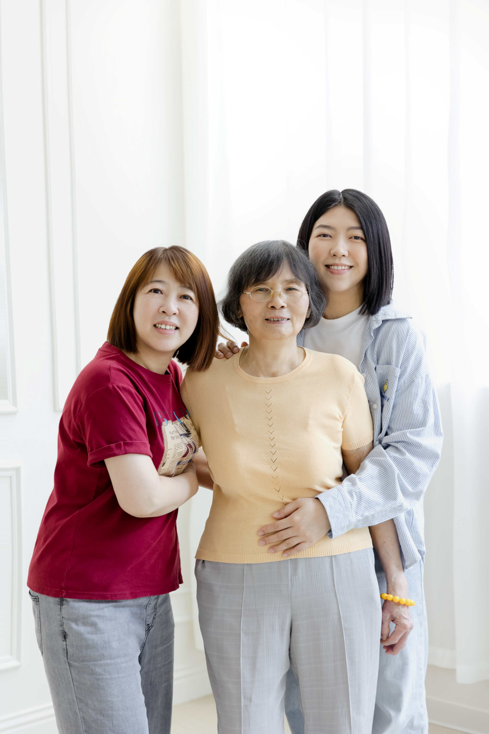 透過高度差與層次安排,不需要所有人站成一排,畫面會更平衡、也更舒服,長輩與孩子都能被好好安放。