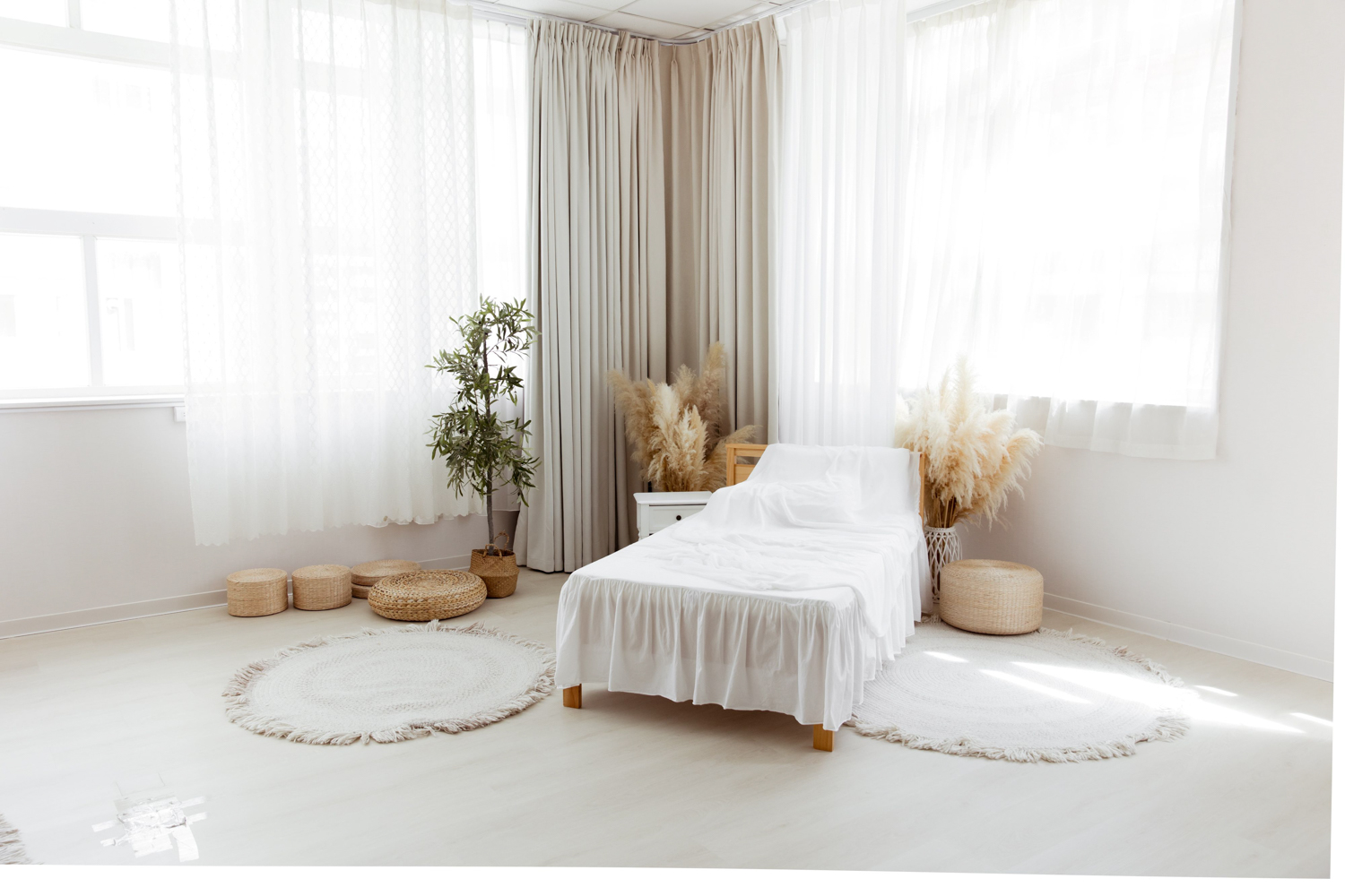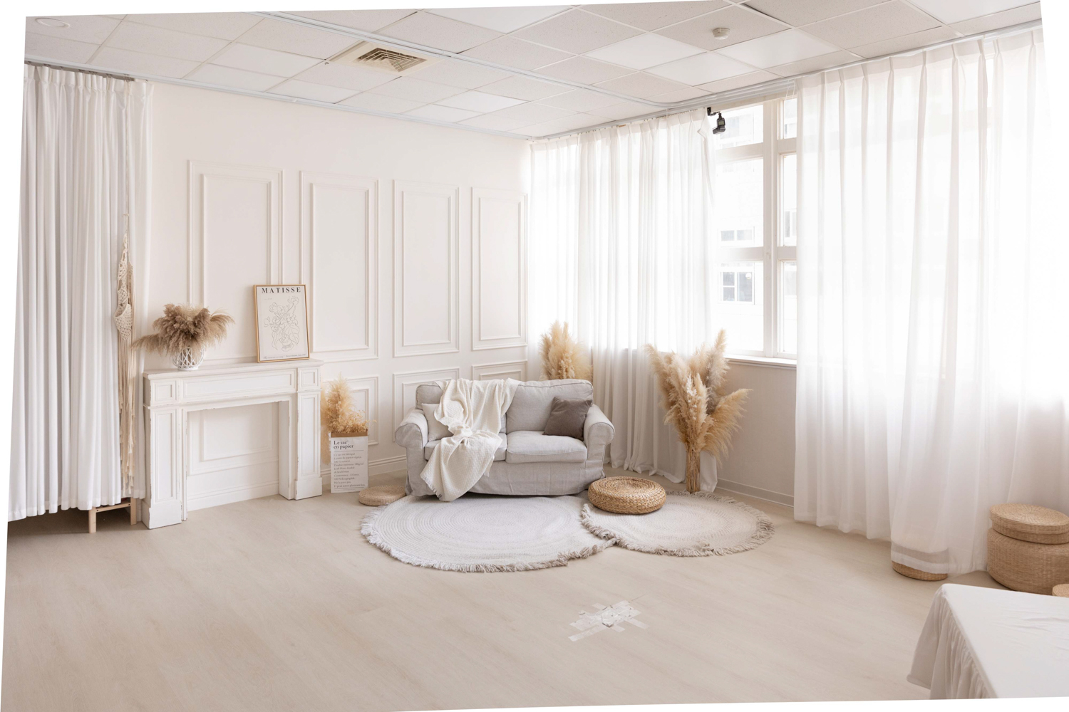果果攝影棚使用的都是實際空間與真實家具,不是印刷背景,也不是平面背板。畫面中看到的光影、牆面與家具都是真實存在的,因此照片會更有生活感,也更耐看。