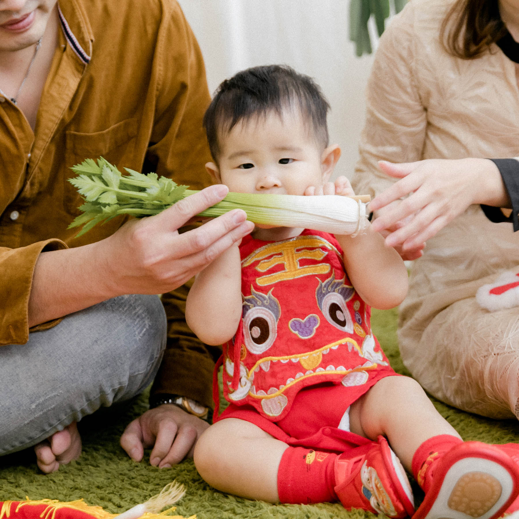 吉祥話:「手抱芹菜,寶寶以後勤奮向上」