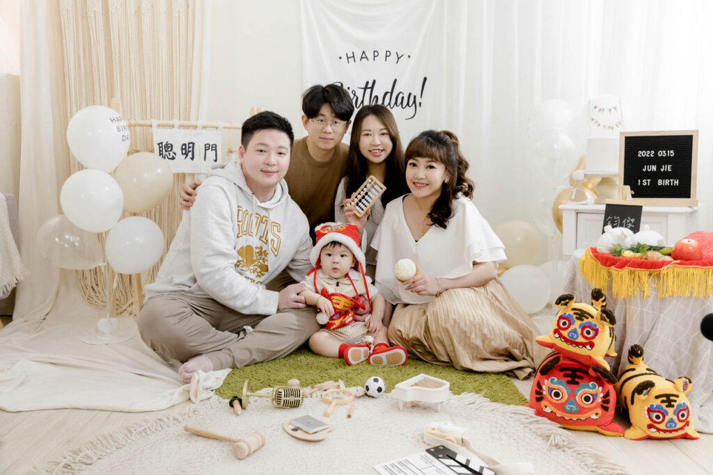 結束了整個儀式後,寶寶可以換上符合派對風格的服裝,爸爸媽媽與親朋好友們一同祝福寶寶,迎接寶寶人生的第一個蛋糕。最後再來個全家大合照,共同見證寶貝成長的重要時刻。