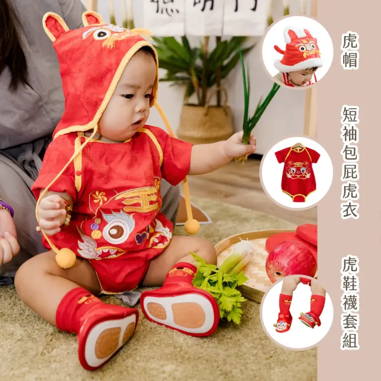 名稱:抓周必備 🔥 短袖包屁虎衣套組 x 虎帽 x 虎鞋襪套組產地:中國(台灣監製)